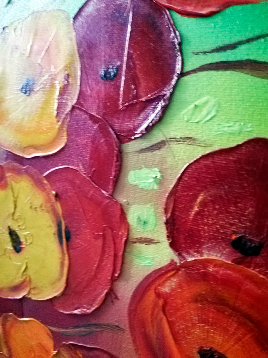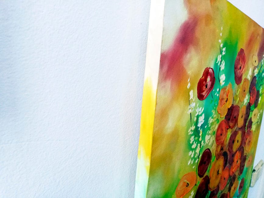 Pictura acrilic, rama lemn, Camp cu maci, semnata Marius “Barbone” BARB
