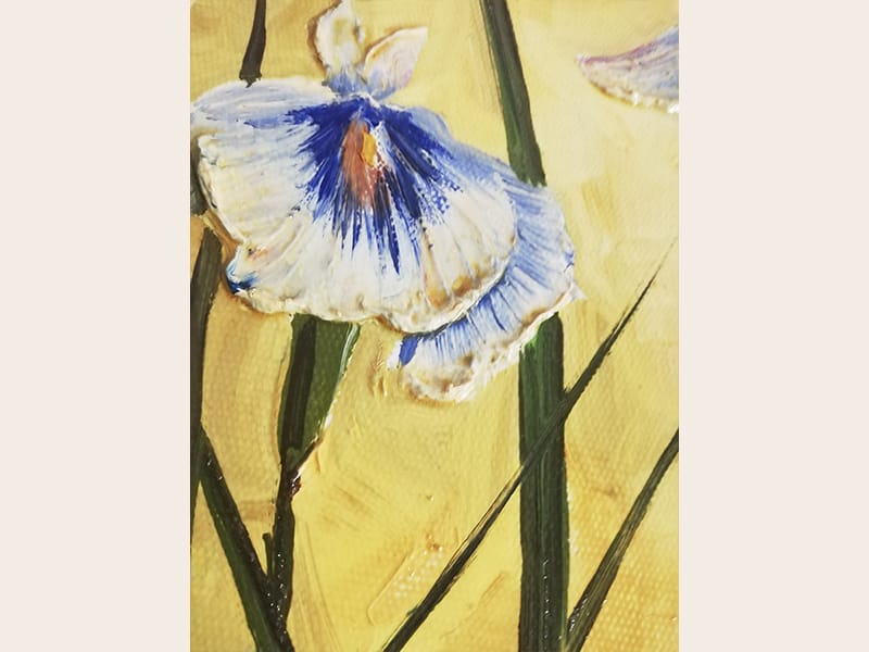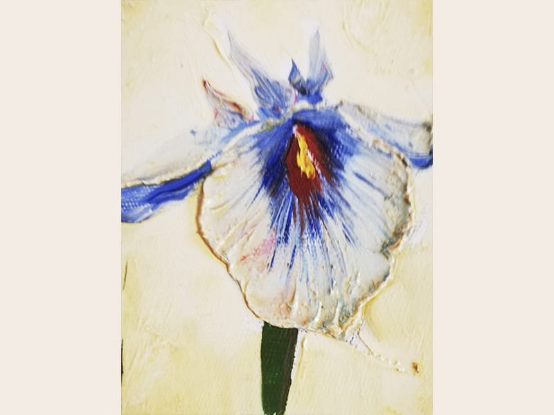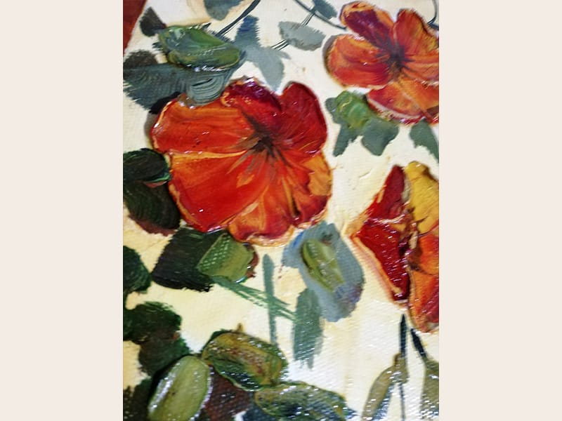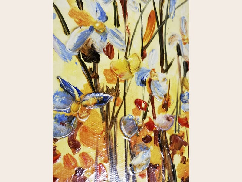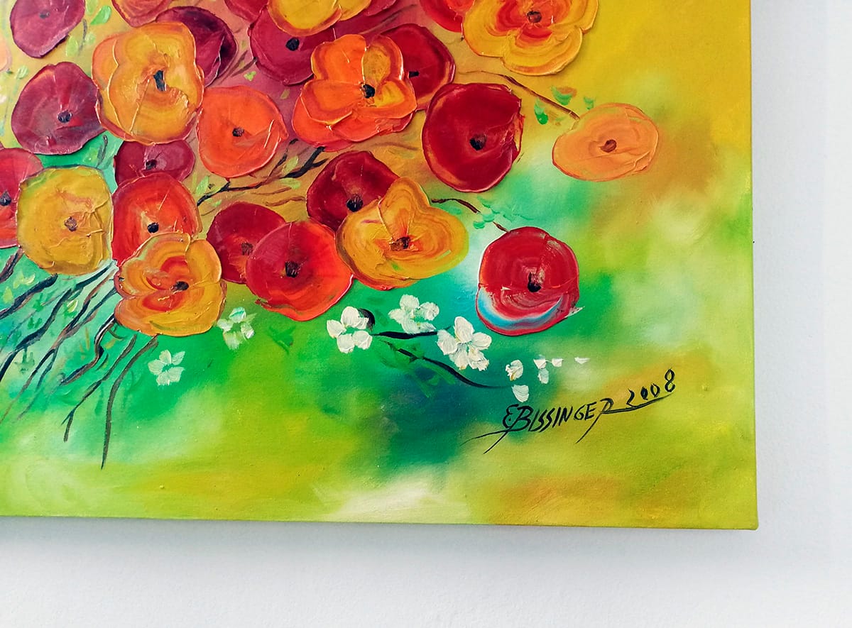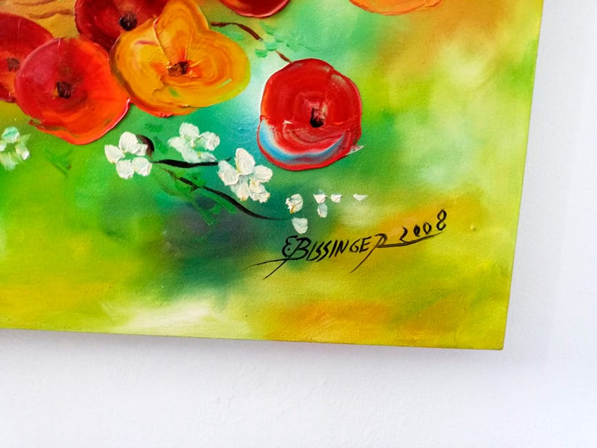 Pictura acrilic – tehnica cutit – Flori de primavara – semnat Bissinger – 2008