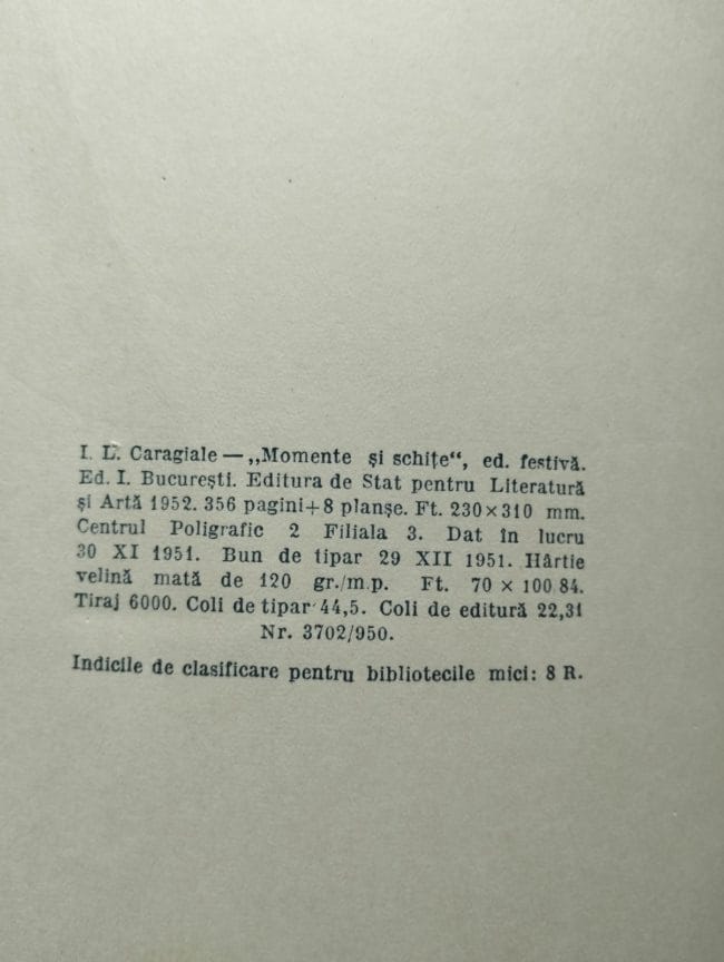 I.L. Caragiale – Momente si Schite – tipar din