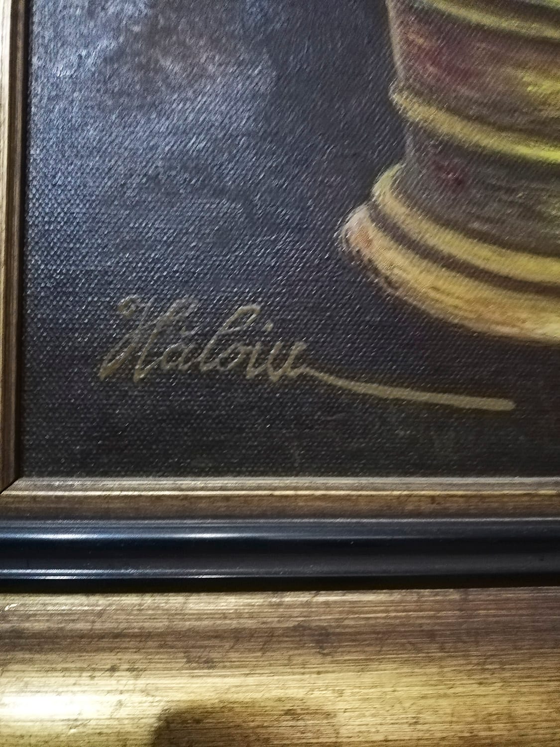 Pictura in ulei – vaza cu floarea soarelui – semnata Haloiu – rama din lemn
