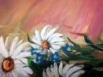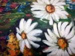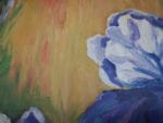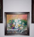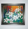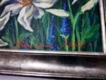 Pictura acrilic, crini, margarete, irisi, semnate Barb 2008, cu rame lemn