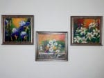 Pictura acrilic, 3 piese, tehnica – cutit (in pasto), semnate Cleo 08, cu rama