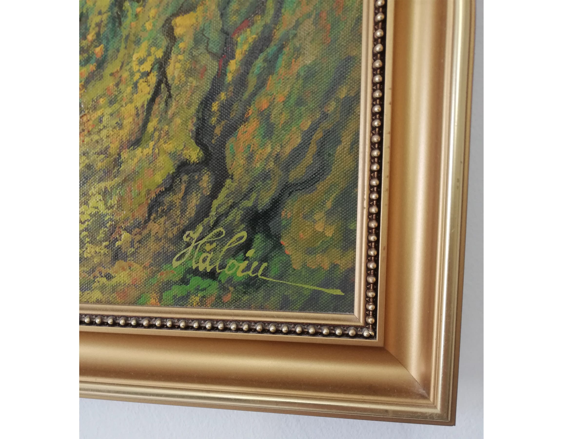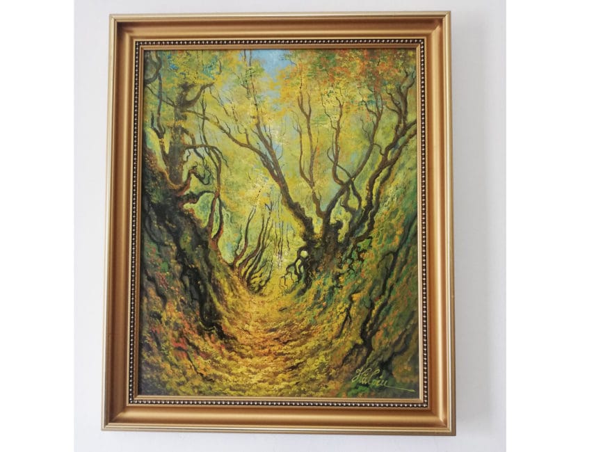Pictura in ulei – Peisaj in padure – semnata – pictor Ionel Haloiu, rama lemn